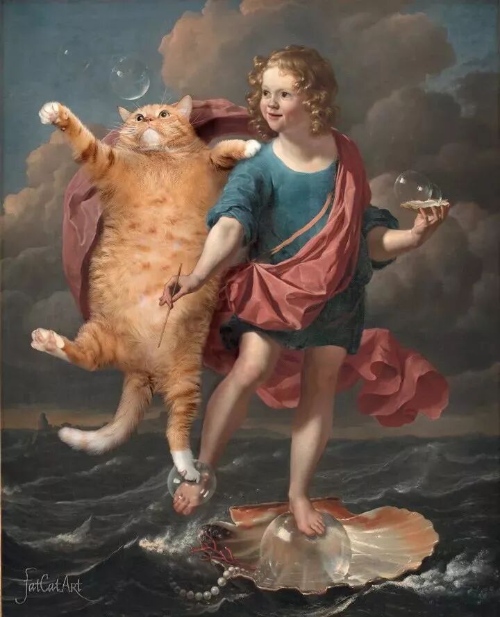 「浮阁 | 分享」当橘猫闯入世界名画,简直不要太可爱!