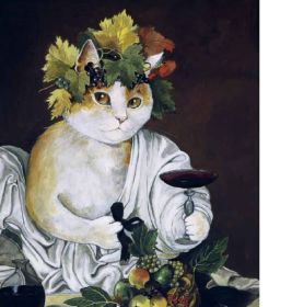 他斜倚着身子,头戴葡萄藤冠,身披白色的锦布,姿态太撩人了!“酒神喵”端一杯红酒,邀你共醉。