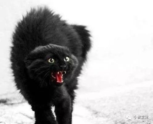 你敢吓我,我也摆个造型来吓吓你,看看到底谁怂!这只小黑猫完全表现出了自己战斗的愿望,对方敢再近一步就要冲上去打架了。