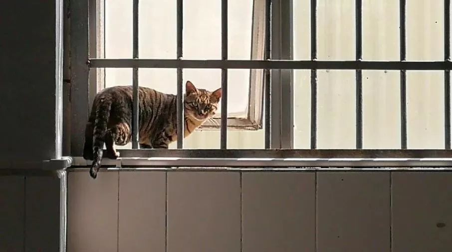 在深圳监狱里服刑人员和猫几乎接触不到高冷敏捷的猫咪远远看到人时一溜烟便消失了