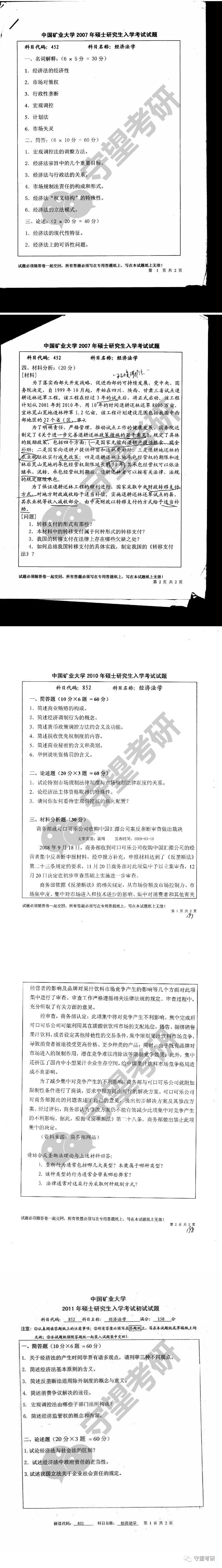 中国矿业大学(徐州)经济法学2007、2010-2011历年考研专业课真题汇编