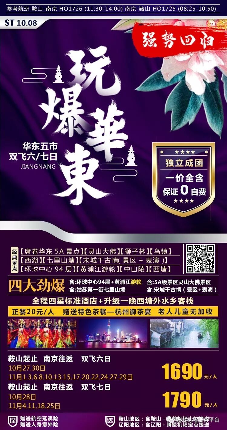 3、鞍山-南京航线航班调整初期10月27日、30日、11月4日、6日、13日、15日是11:30起飞,之后恢复12:00起飞;