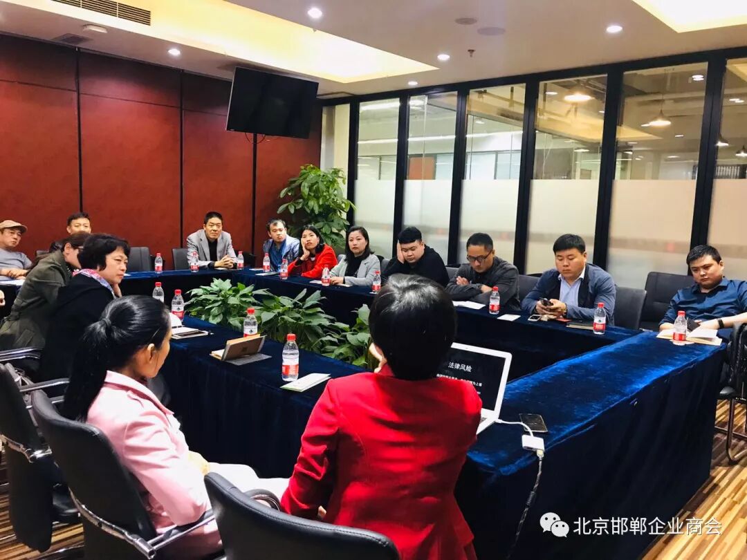 金秋十月是收获的季节,为增强广大会员对于企业常见法律风险的防范意识,北京邯郸企业商会特邀北京京师律师事务所合伙人、商会副会长张式杰律师,于2019年10月18日下午为会员企业进行《企业常见法律风险与防范》的培训,部分商会会员以及慕名而来的北京义乌企业商会、北京石家庄企业商会的工作人员参加了本次活动。