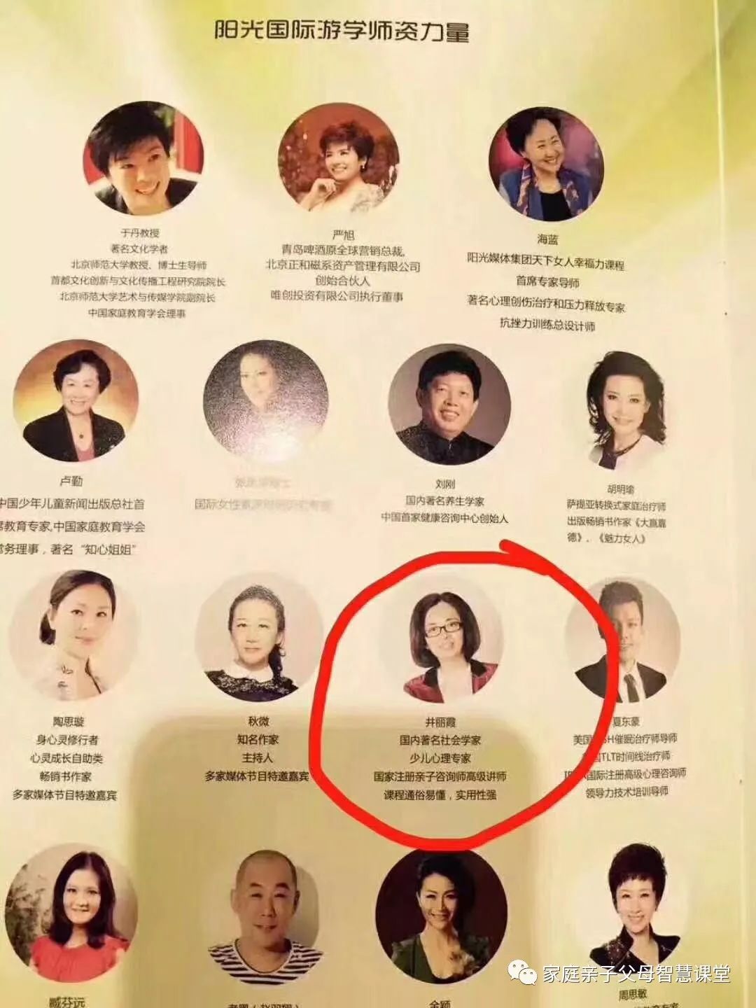 杨澜,阳光媒体集团主席,开创《杨澜访谈录》《天下女人》《阳光幸福力》,在她举办的天下女人国际论坛里,我们看到了井立霞老师的身影,在她的阳光幸福力课程里我们看到了首席特约讲师井立霞的名字。
