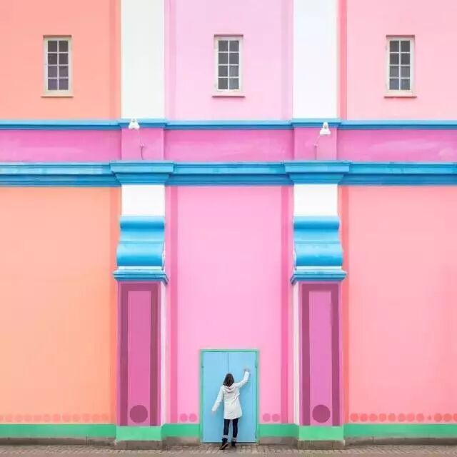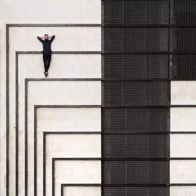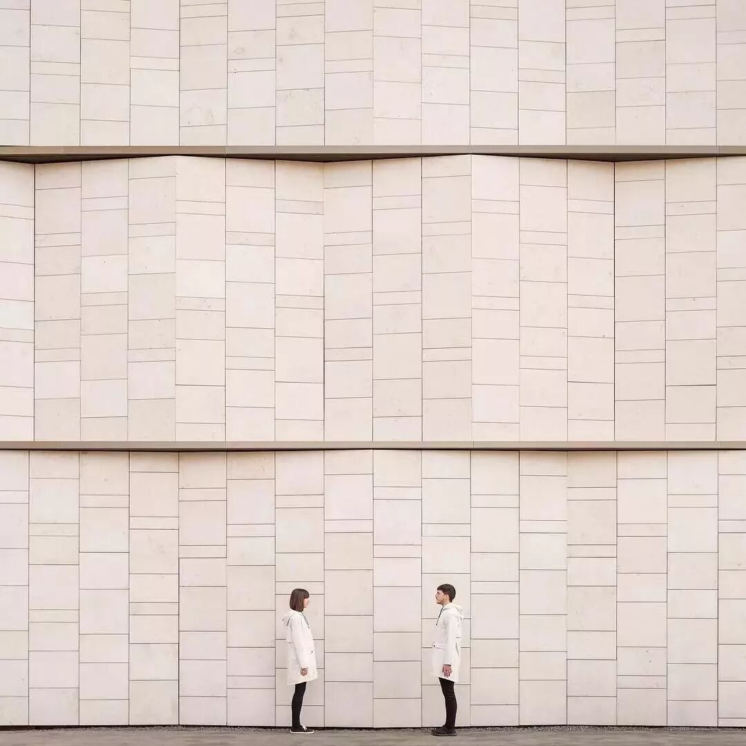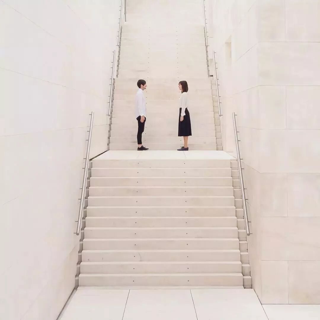 虽然合照里面人物只占很小一部分,但是即便是在极简又庞大的几何背景下,这样的情侣照还是让人印象深刻