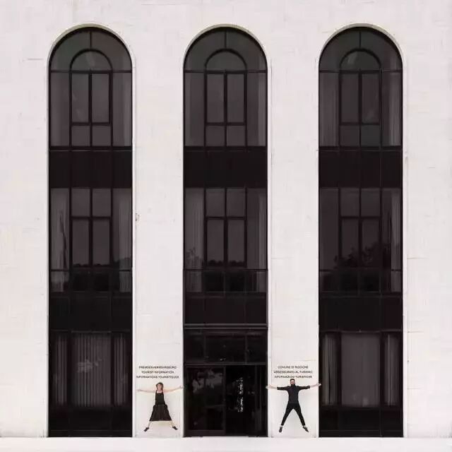 然而大多数人在自己与建筑的合影里很容易沦为陪衬,而Daniel和Anna 却渐渐地找到了最有趣的方式,来和世界各地的建筑互动
