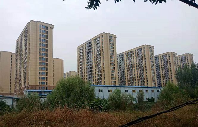 沿着东方红路,过高铁桥向东,向南望去体量庞大,大部分单体楼栋已经封顶。