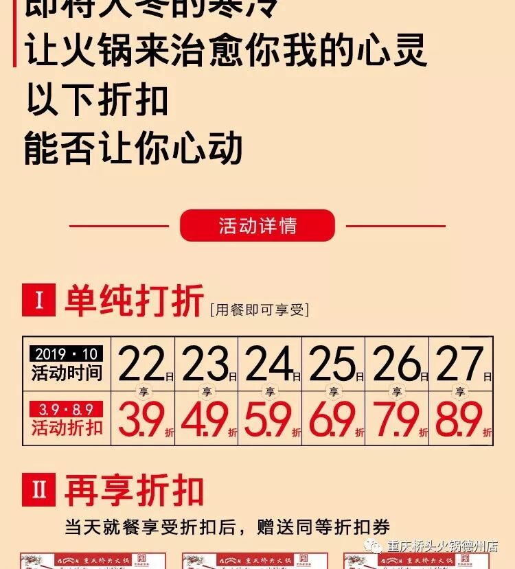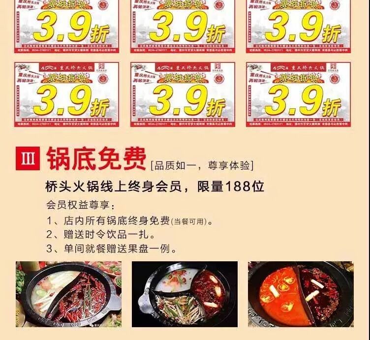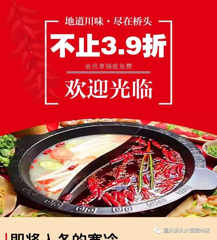 桥头火锅丨3.9折锅底免费·德州桥头火锅,地道川味,吃完还送同等折扣券,巴适得很~快来哟!