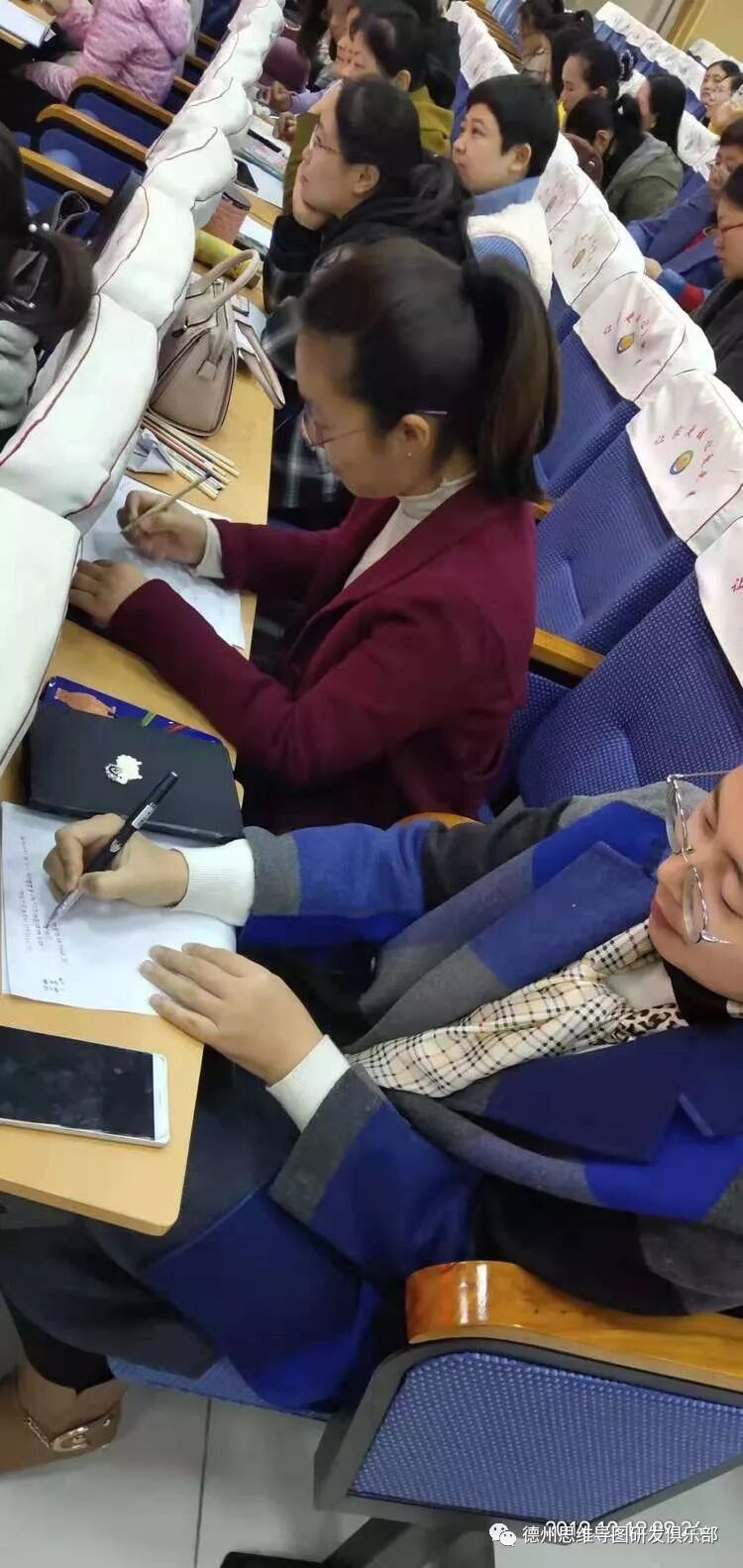 老师们用心聆听,认真记录,甚至有的老师还现场用思维导图做起来笔记。瞧,老师们画得好认真,记得好用心耶!