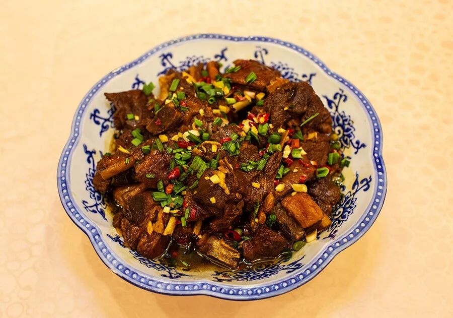 红烧柴火羊肉是南浔区练市镇的传统特色名菜。以“其精而不油、酥而不腻、香而不膻、色泽红亮、鲜美无穷”的特色而成为农家喜宴、宾馆酒店餐桌之佳肴。秋冬时节的练市镇,红烧酱羊肉的香气飘满街。