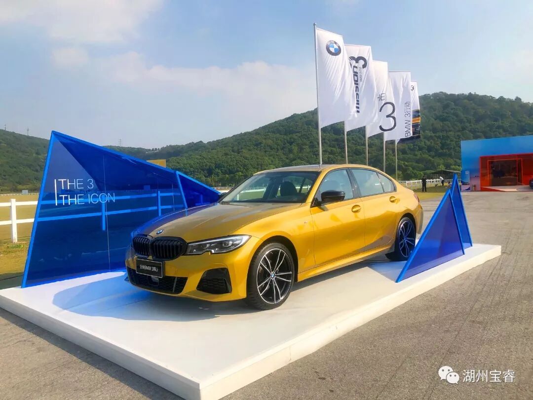 这是一场热血澎湃的逐速之征,进门就看到色彩对撞的金色3系车和蓝色背景板,十分吸引眼球,给人一种很直观的视觉冲击。