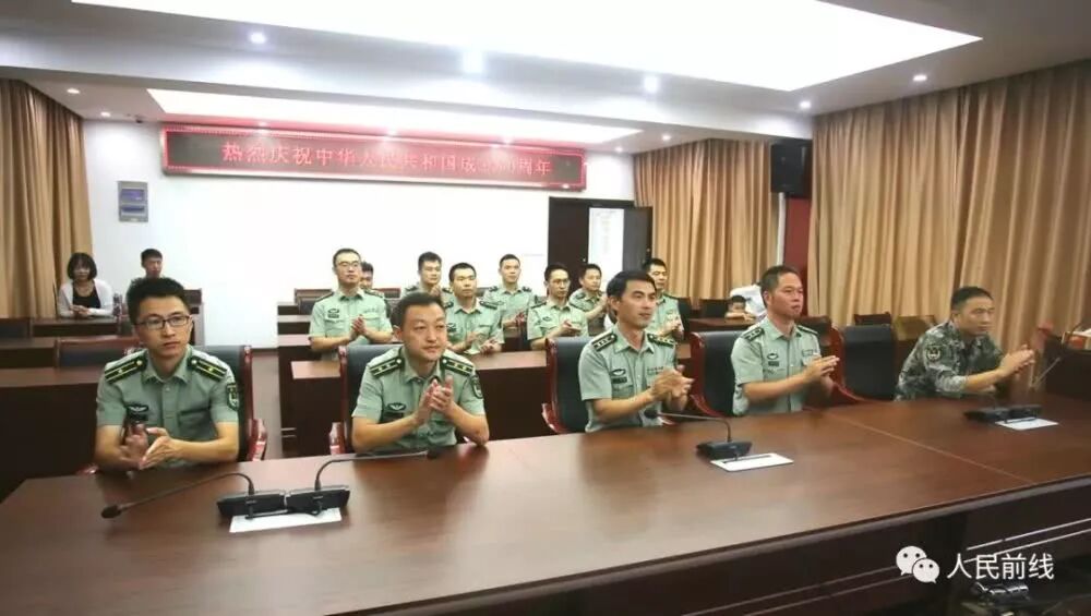 预备役通信团官兵在收看阅兵式时热烈的鼓掌。