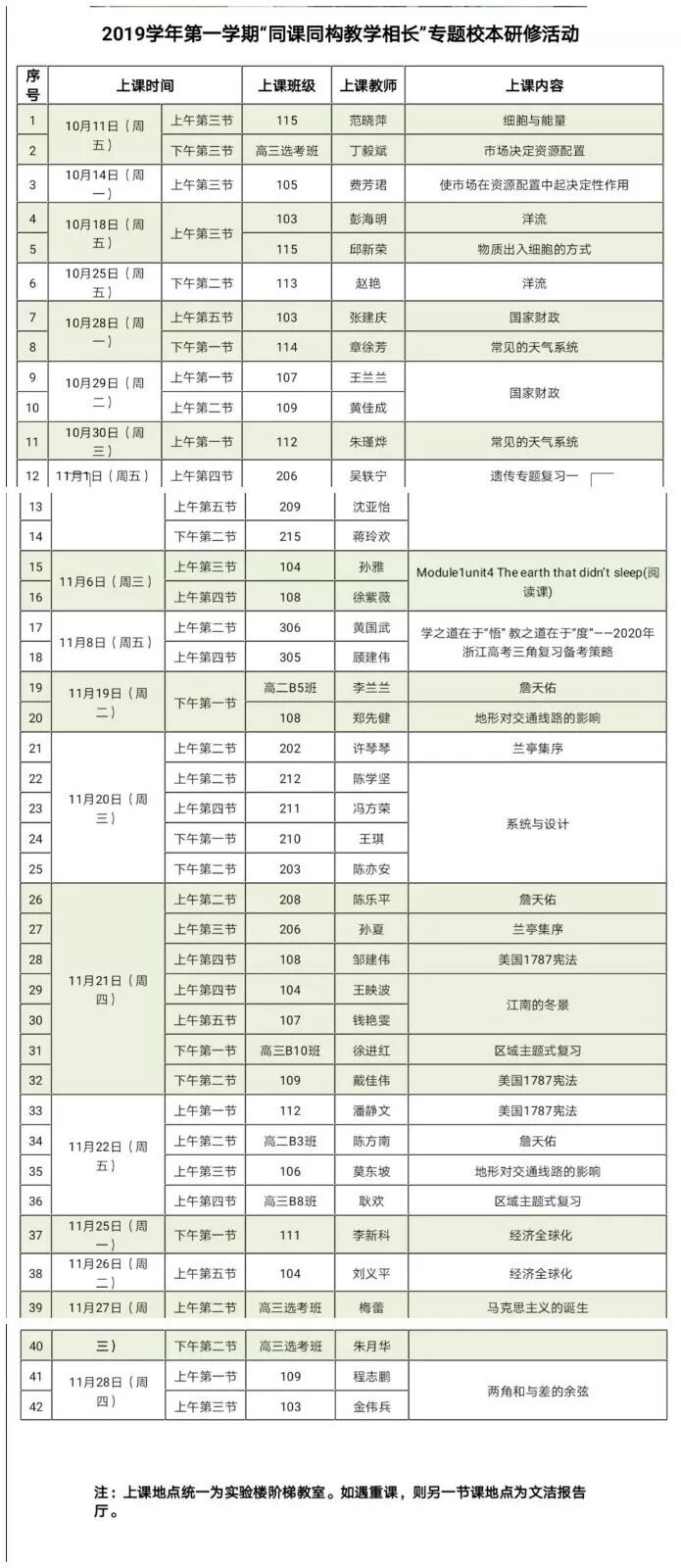 同课同构,教学相长 ——湖州二中2019学年第一学期校本研修专题培训
