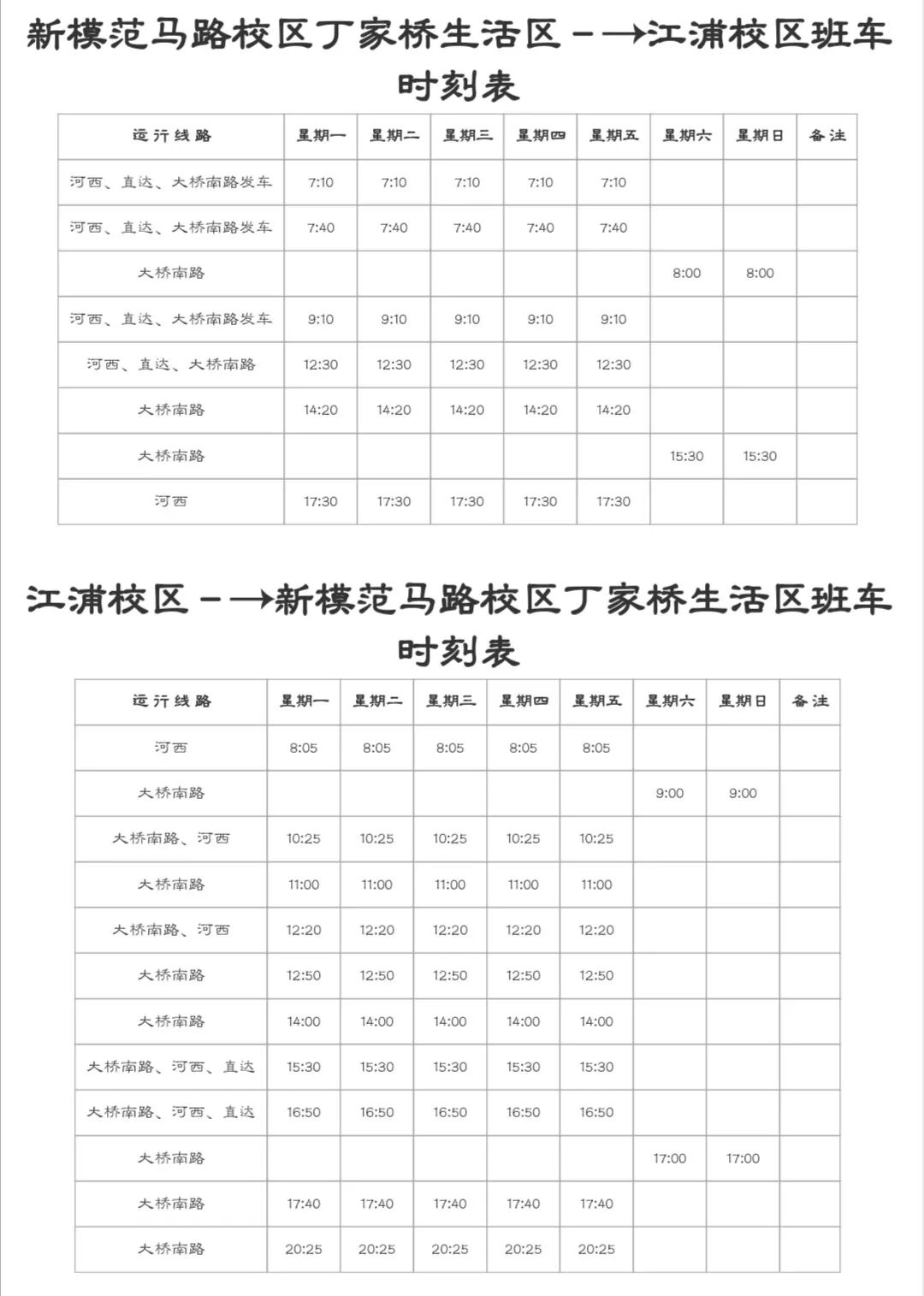 南京工业大学冬季校车时刻表(2019.10—2020.4)
