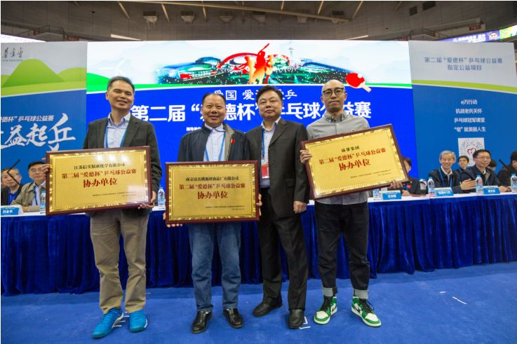 江苏省政协科技委员会副主任、分党组副书记黄华业,南京市人大原副主任、南京市乒协名誉主席单景南,江苏省体育产业集团党委副书记、南京奥体中心经营管理有限公司董事长胡中强向本届赛事的协办、特别支持、承办单位授牌