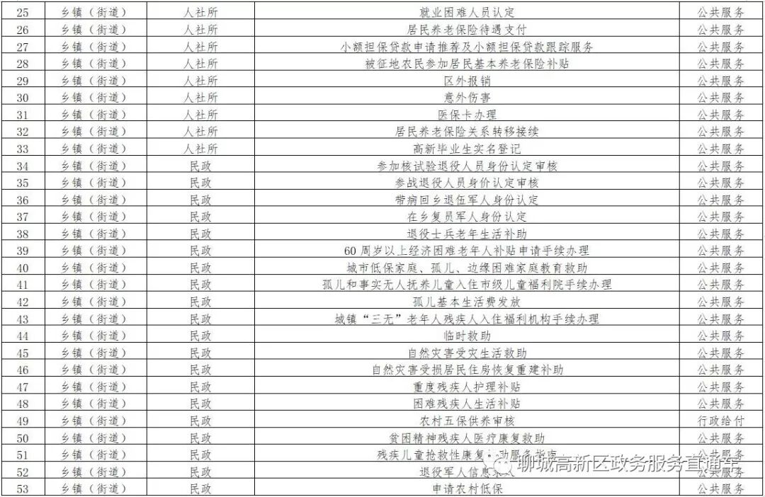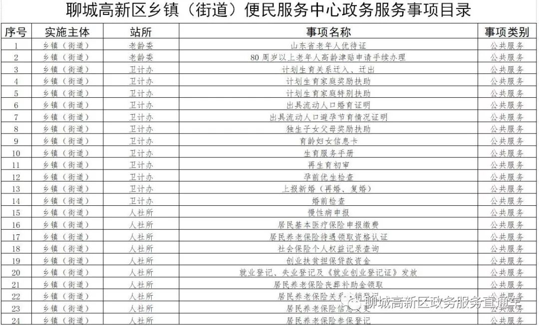 聊城高新区乡镇(街道)便民服务中心政务服务事项目录