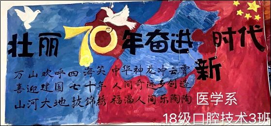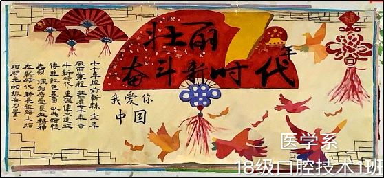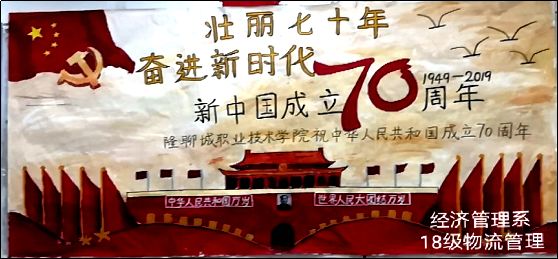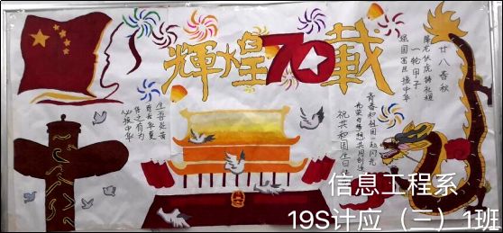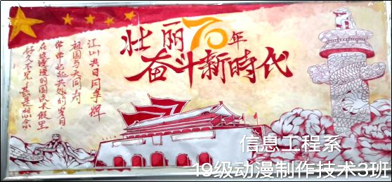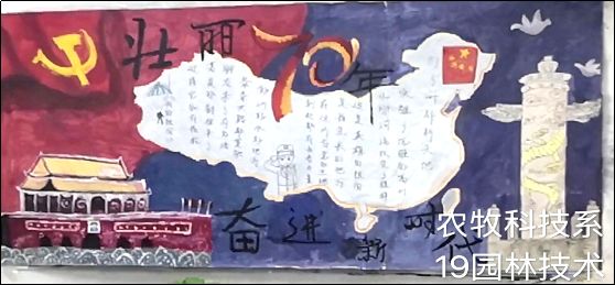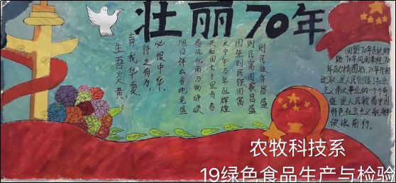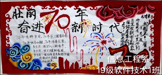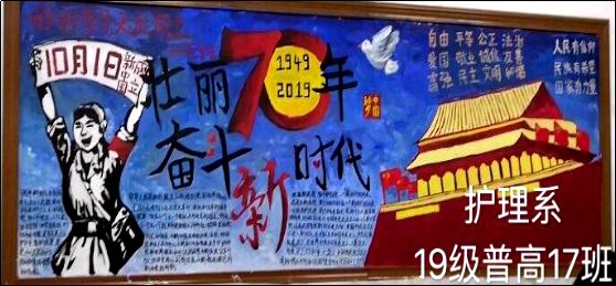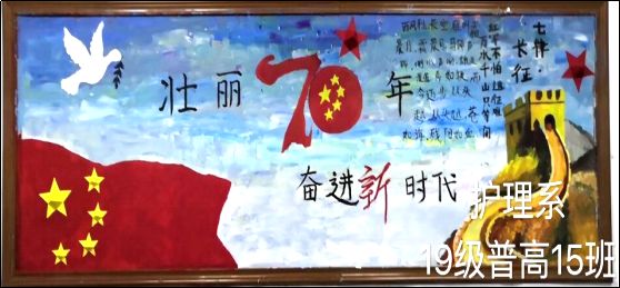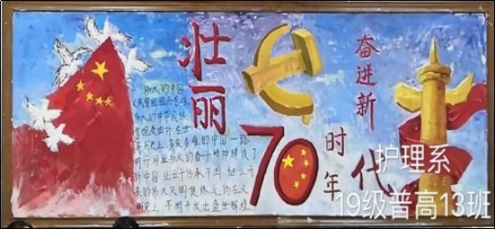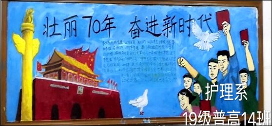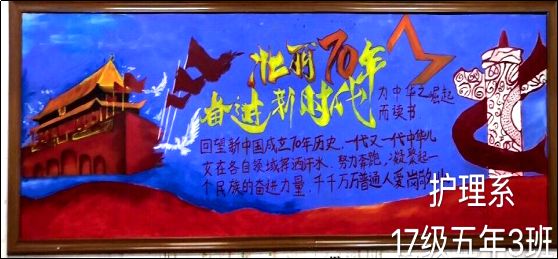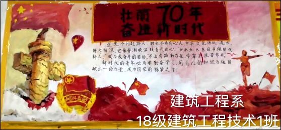 为纪念新中国成立70周年,进一步激发广大青年的爱国热情,引导广大青年继承和弘扬爱国主义光荣传统,坚定信心为实现伟大的中国梦而不断奋斗。我院团委近期开展“壮丽70年,奋进新时代”主题板报评比活动,并于10月上旬展开为期一周的板报评比活动。