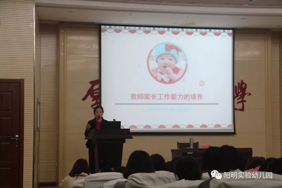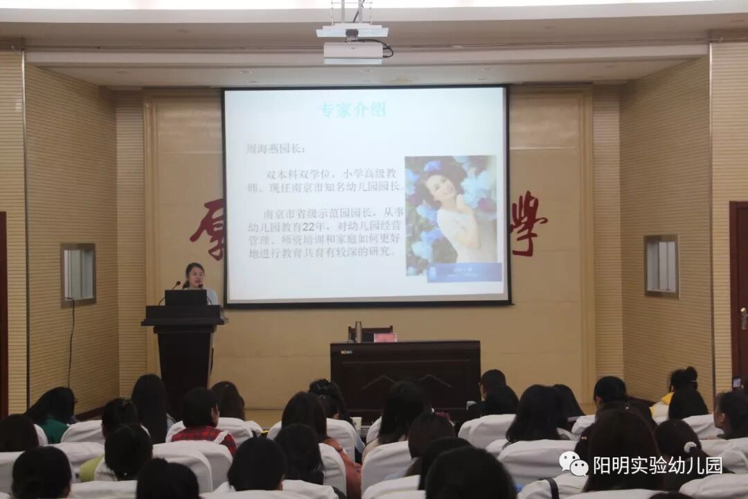 为了更好地践行《3-6岁儿童学习与发展指南》、《幼儿园教育指导纲要》中的“家园共育”工作,有效的开展家园共育工作,开阔幼儿教师视野、更新保育教育理念,不断提升教师个人专业化水平,打造阳明幼教家园共育工作的新样态,2019年10月19日特邀请“南京市先进教育工作者”秦淮晨光幼儿园周海燕园长开展了为期两天的家园共育学术研讨!