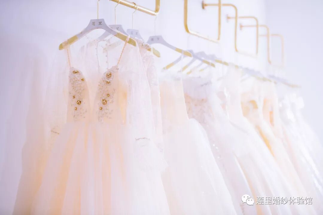 莲里婚纱中的婚纱种类齐全,刺绣、绸缎、拖尾、纱制。无论是公主的蓬蓬裙、高雅的鱼尾裙、还是大气的长拖尾或是精致典雅的秀禾,在这都能找到!