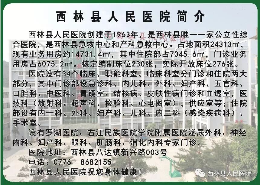 出诊地点:西林县人民医院门诊业务综合楼三楼妇产科专科门诊