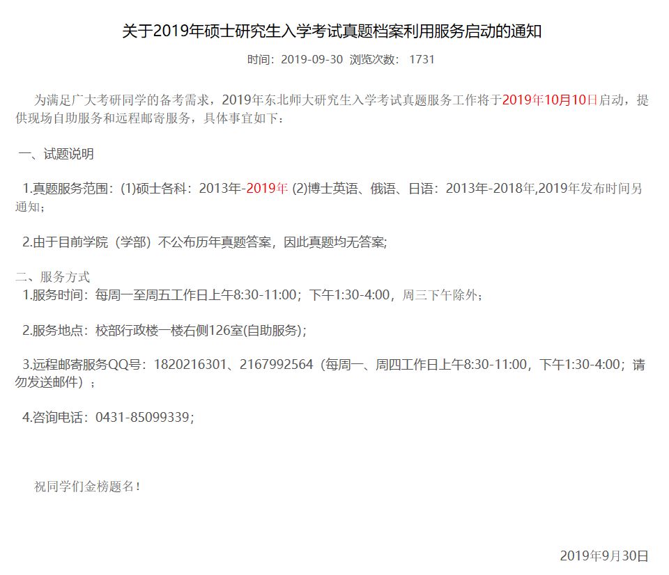 真题可远程邮寄,东北师范大学(部属211)启动考研真题档案利用服务