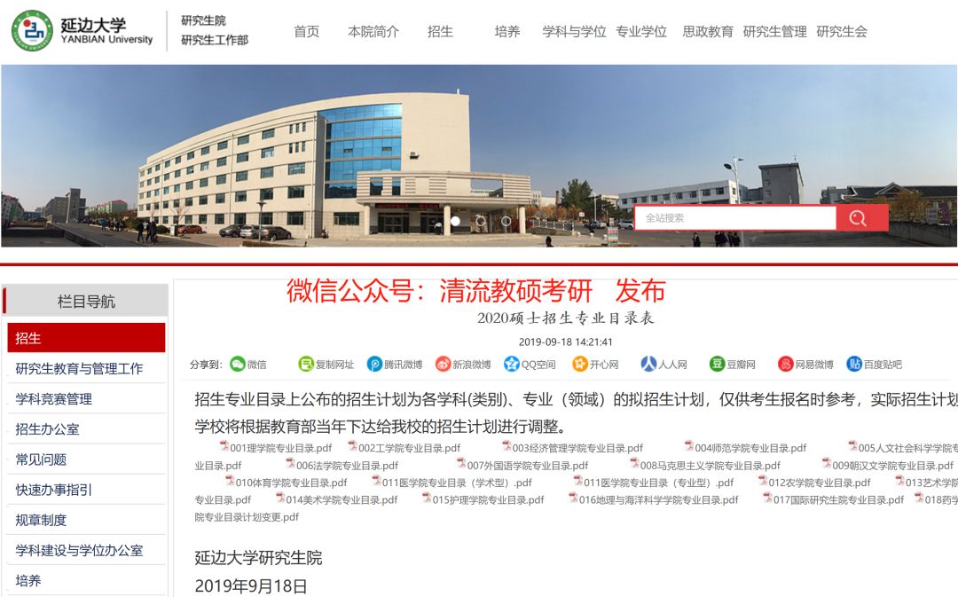 冷门211高校!延边大学公布20教育硕士考研招生目录