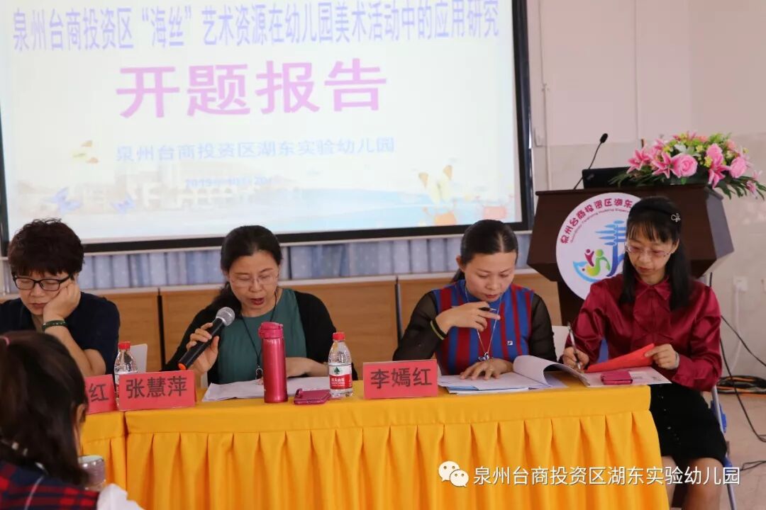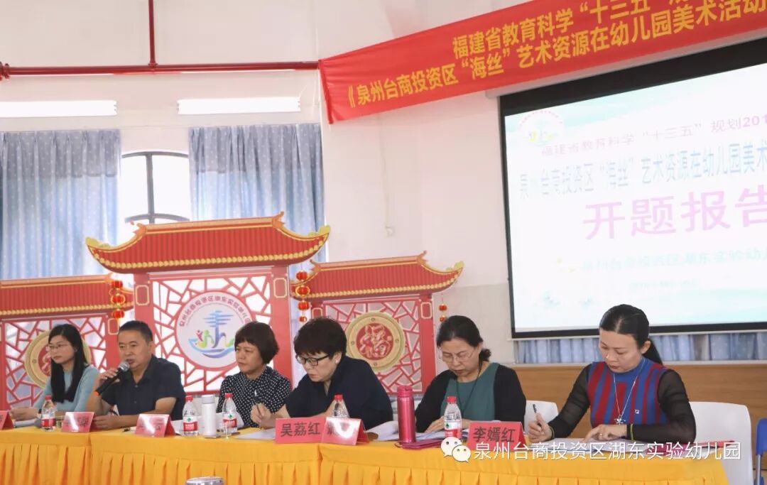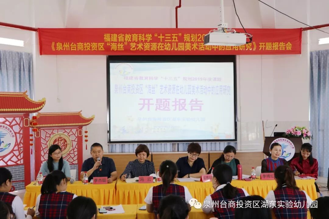 金秋十月,丹桂飘香。10月20日上午,泉州台商投资区湖东实验幼儿园在学园多媒体活动室举行了福建省教育科学“十三五”规划2019立项课题《泉州台商投资区“海丝”艺术资源在幼儿园美术活动中的应用研究》开题报告会。福建师范大学教育学院吴荔红教授、福建省教育科学研究所教育发展研究室冯云主任,泉州市教育科学硏究所幼教教研室主任张慧萍、泉州台商投资区教育文体旅游局教育事业科李杰聪副科长、区进修学校黄瑜香老师等专家莅临现场指导,会议由副园长李葱葱主持,学园全体教师参加了课题开题论证会。