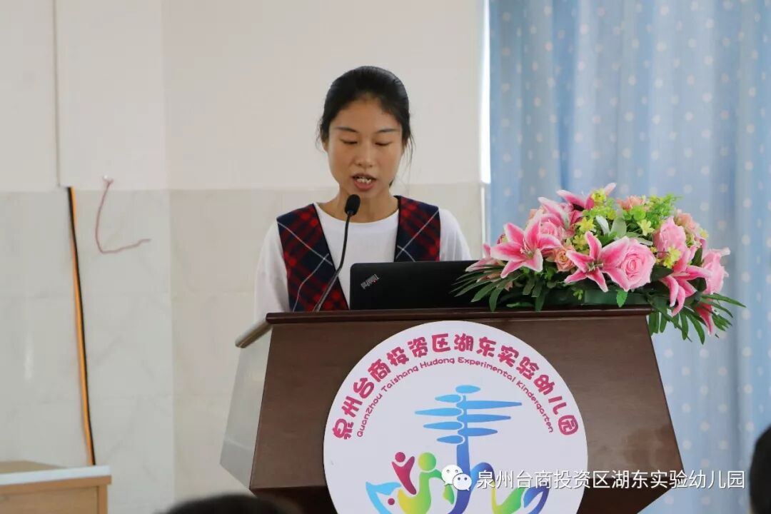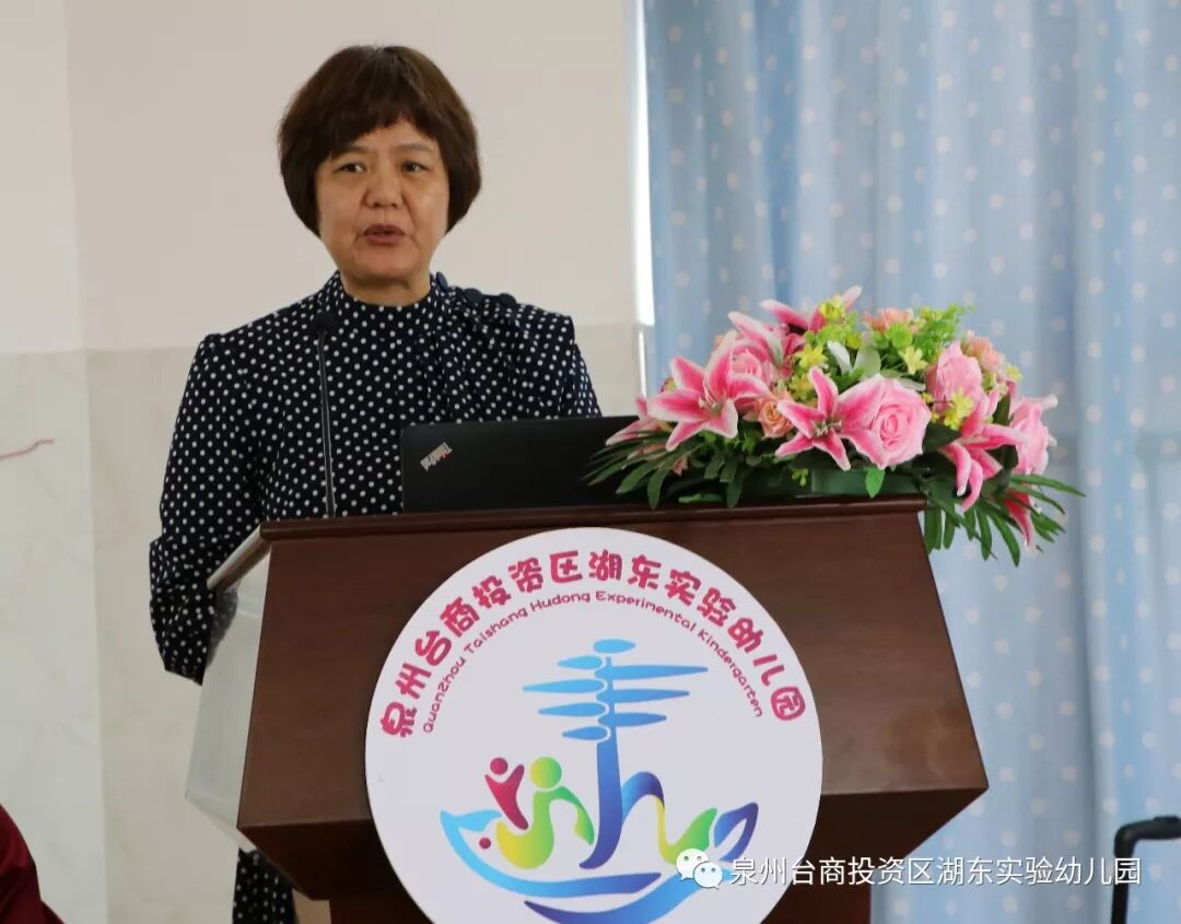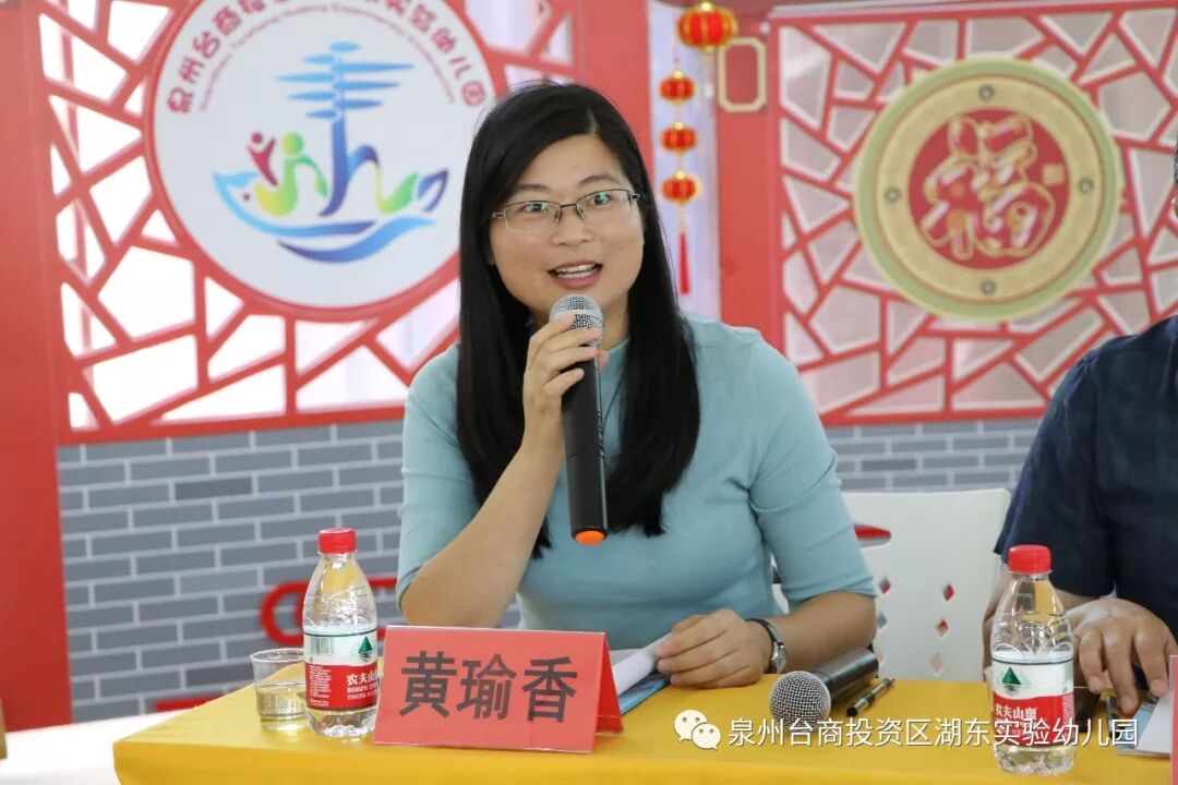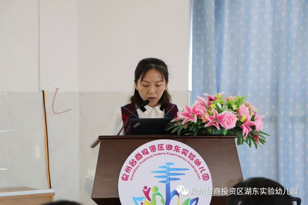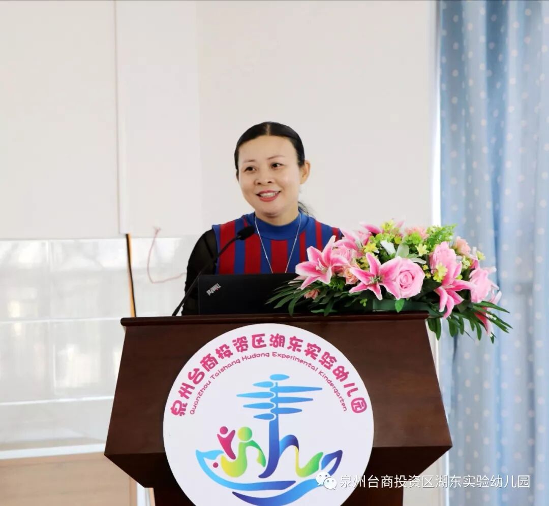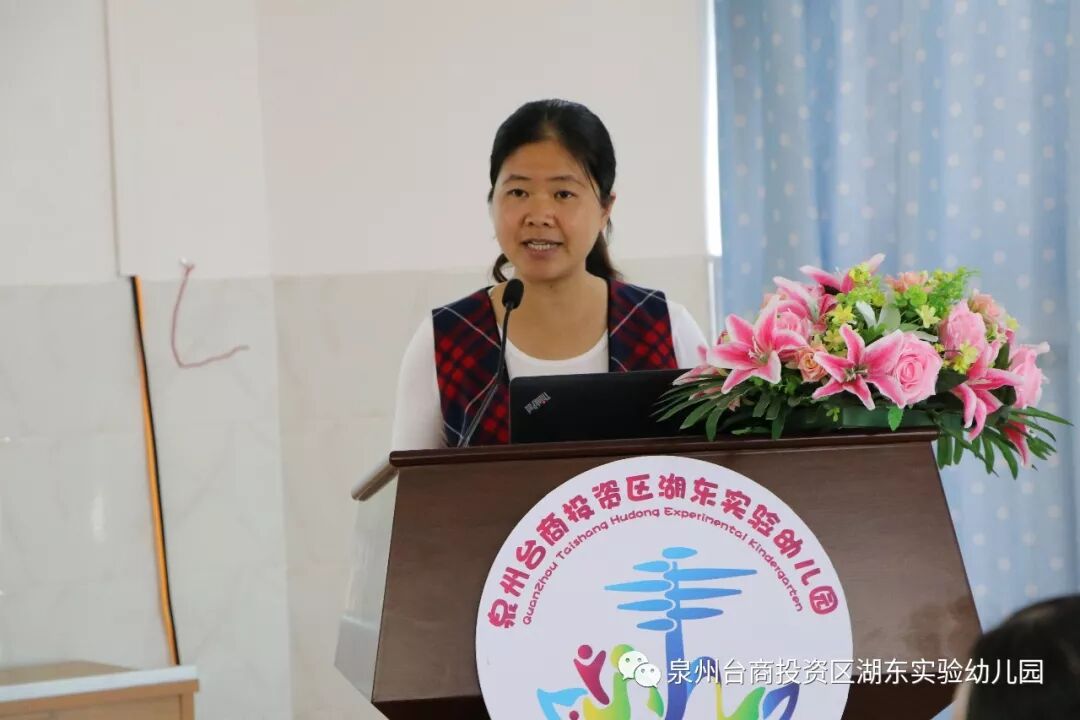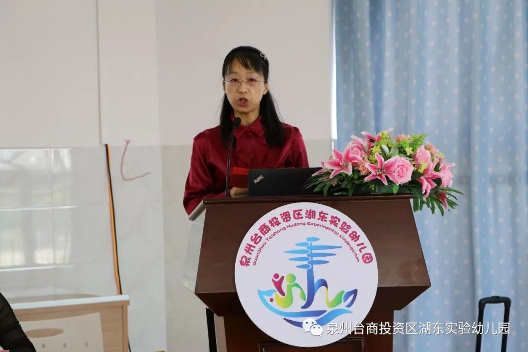 李葱葱业务园长介绍湖东实验幼儿园教师团队文化和园本教研开展情况。
