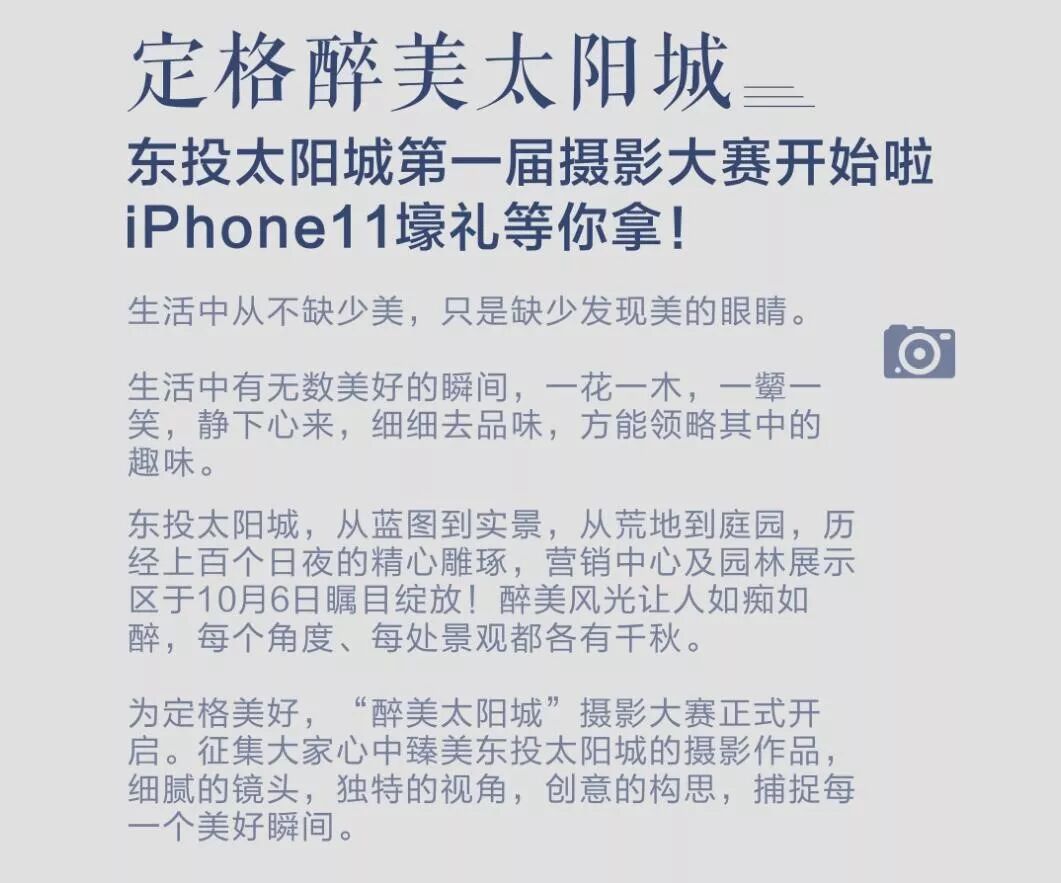 识别下方二维码,编辑文字(围绕“醉美太阳城”主题展开,描述拍摄时的感想)+作品照片(图片原图发送),注明作者姓名和联系电话。