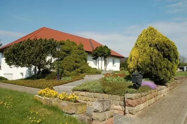 在德国乡村,一般没有防盗门窗,甚至连围墙也极少见。有的话,也是像这样矮矮的,作为边界。