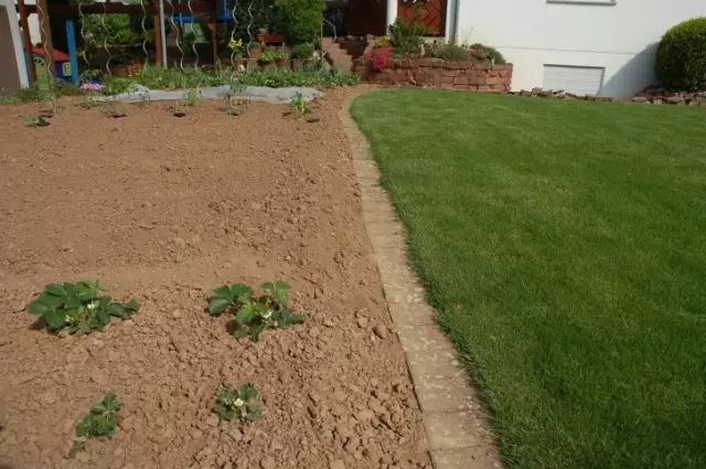 这家人将小花园一分为二:一半草地,另一半,用来种花和草莓。