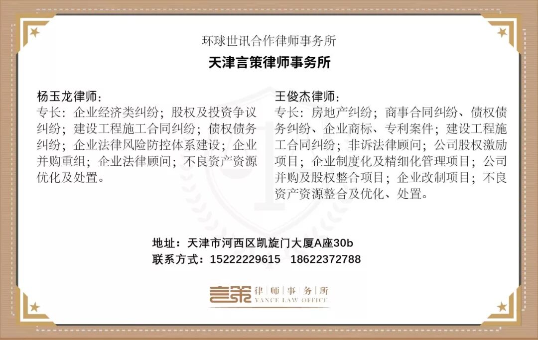 法律顾问:天津言策律师事务所 杨玉龙律师