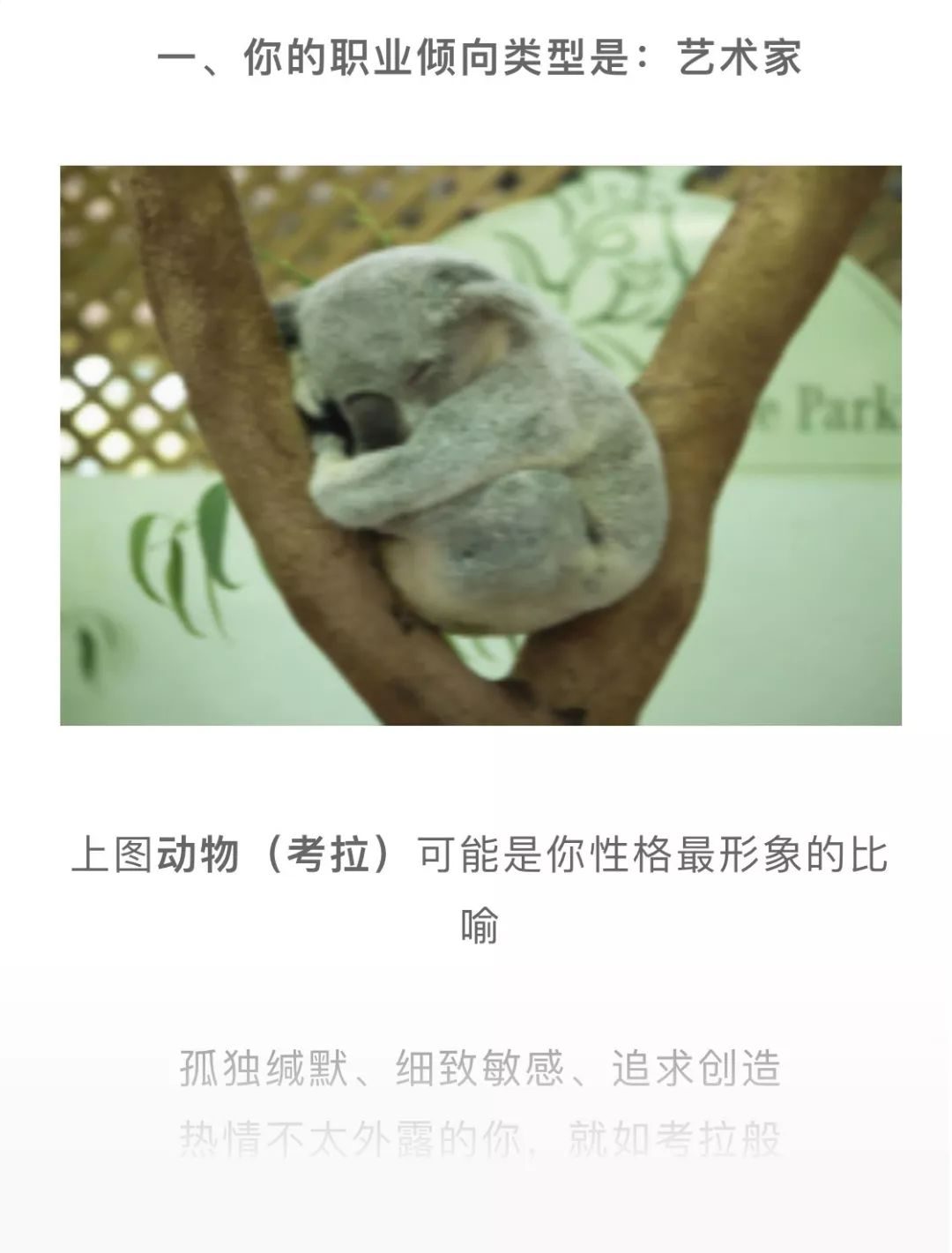 激励者、表演家、理想等,给出贴合你性格的动物比喻,如海豚、大象、狐狸、考拉