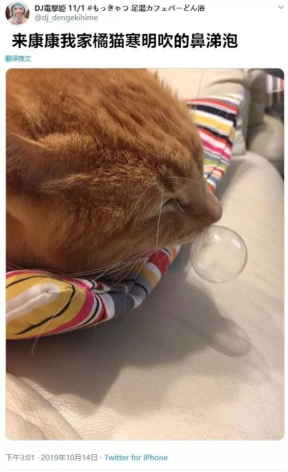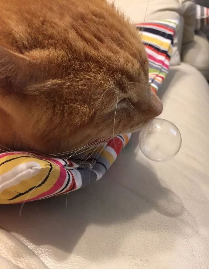 橘猫酣睡过于香甜,吹起了一个圆润的鼻涕泡