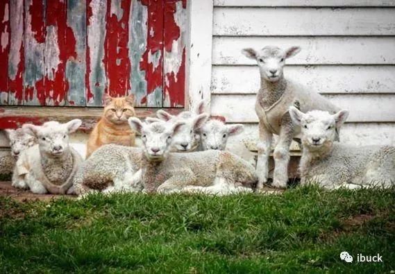 其实主人家是有正儿八经的牧羊犬的,但牧羊犬看管的都是成年羊,小羊羔于是就被那个橘猫给霸佔了。