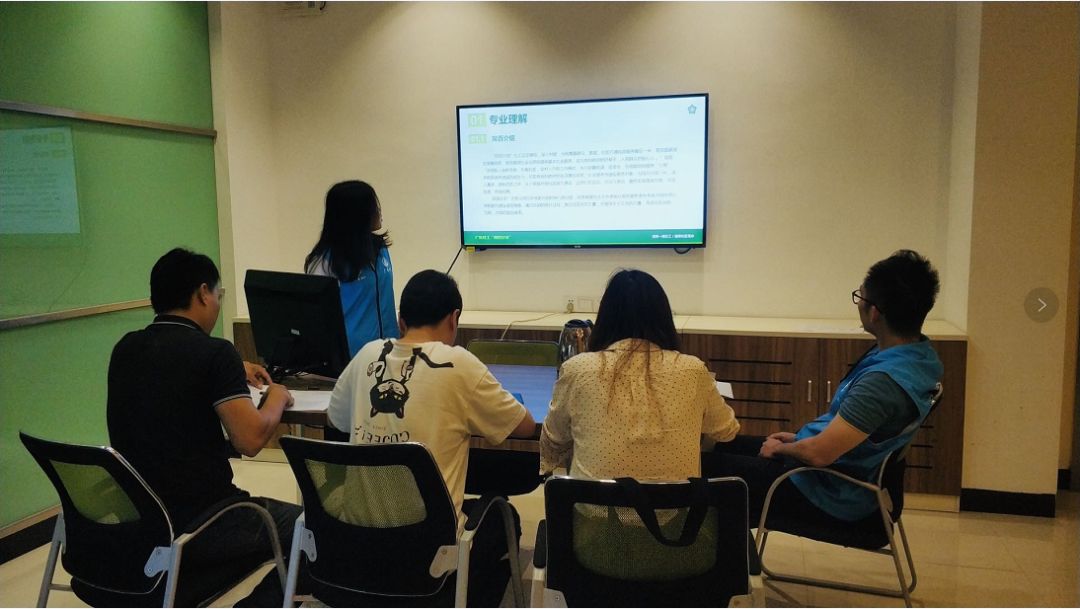 考核评估小组由江门市地区中心专职协同者卓小青、江门市环市街道代表谈堃睿,以及社工站副站长黄家荣组成,采用被评估者作工作汇报,由考核评估小组进行现场会谈打分的方式。考核的评级分为优秀、良好、合格和不合格。先由被评估社工通过 PPT 形式向评估小组现场展示工作试用期报告内容,并作现场汇报。评估小组根据被评估社工提交的工作报告及现场展示情况,结合社工试用期间岗位职责执行情况、专业成长情况以及任务产出具体指标等进行评级。