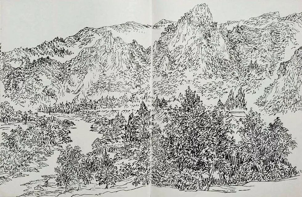 来到光东村写生,心底时常泛起阵阵激动,这原因也许是小时候就常常听的歌曲《红太阳照边疆》。歌词是:红太阳照边疆,青山绿水披霞光,长白山下果树成行,海兰江畔稻花香。劈开高山,大地献宝藏,拦河筑坝,引水上山岗,延边人民斗志昂扬,军民团结建设家乡。毛主席领导我们胜利向前方。胜利向前方,胜利向前方。由于这是一首全国闻名的歌曲,在东北吉林省播放的次数就自然比其他地方多了许多,就在这反反复复的播放中,海兰江就成了我心中向往的地方,从小就想着长大了一定去看一看,画一画。没想到随着习总书记视察光东村的机缘,我也真的来到了海兰江畔的光东村,画了海兰江,画了稻花香,画了青山绿水,画了已经脱贫的光东村。而我的两张作品的题目也在《红太阳照边疆》中找到了。一张叫《海兰江畔稻花香》,一张叫《家在青山绿水间》。对于画者而言,对所画对象倾注了别样情怀,画起来可能就不太一样了,我也将尽力画好这幅儿时就想画的图画。