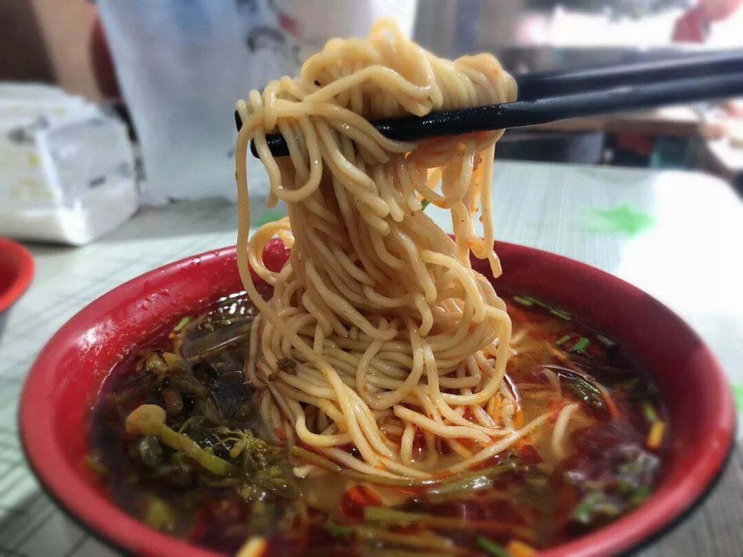 早餐来个虾籽面,中午点份平锅炒面,晚上再吃一碗牛肉面,连汤带水一个礼拜不重样。