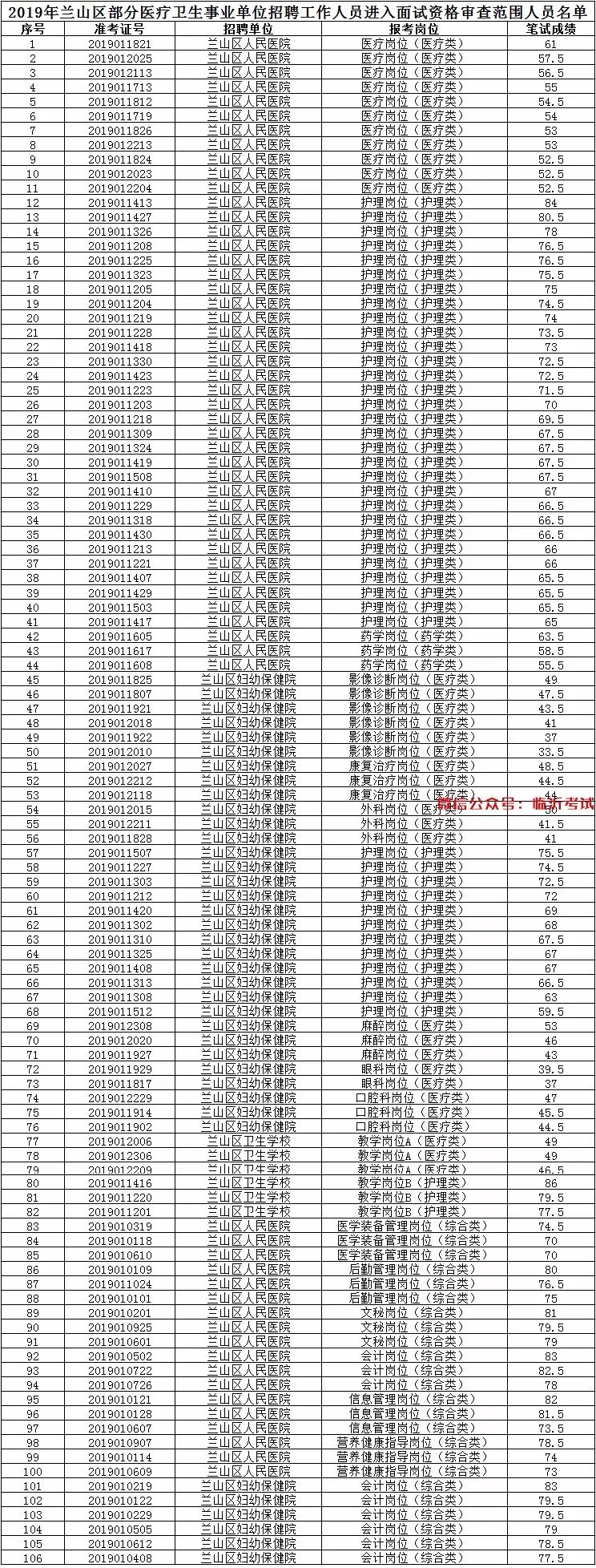 四、其他注意的问题1、请进入面试资格审查范围的应聘人员提前准备好面试资格审查材料,按时到指定地点参加现场资格审查。未按照本公告参加现场资格审查的,视为弃权。2、《面试通知书》领取时间和地点,将于面试资格审查后在网上公布,请广大应聘人员注意浏览兰山区政府网站信息,保持所留联系电话24小时通讯畅通,因个人原因造成的后果责任自负。