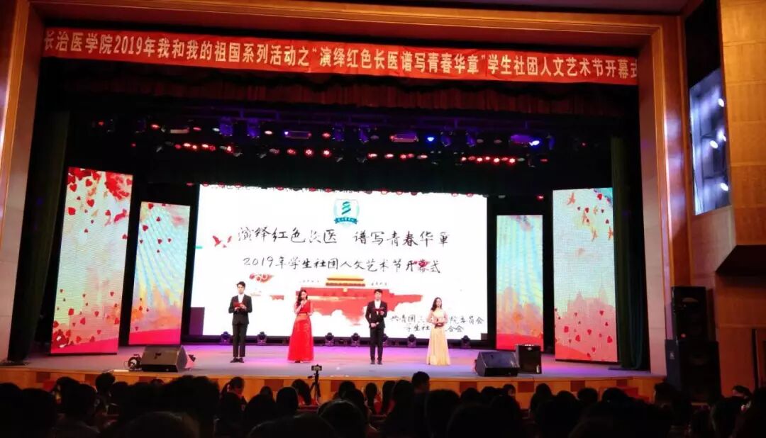 红色长医芳菲始,青春年华正当时。为丰富学生校园文化生活,展现学生青春风采,弘扬长医精神,10月19日晚,“我和我的祖国”系列活动之“演绎红色长医 谱写青春年华”学生社团人文艺术节开幕式在我校科学会堂成功举办。