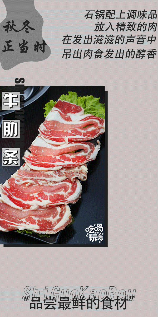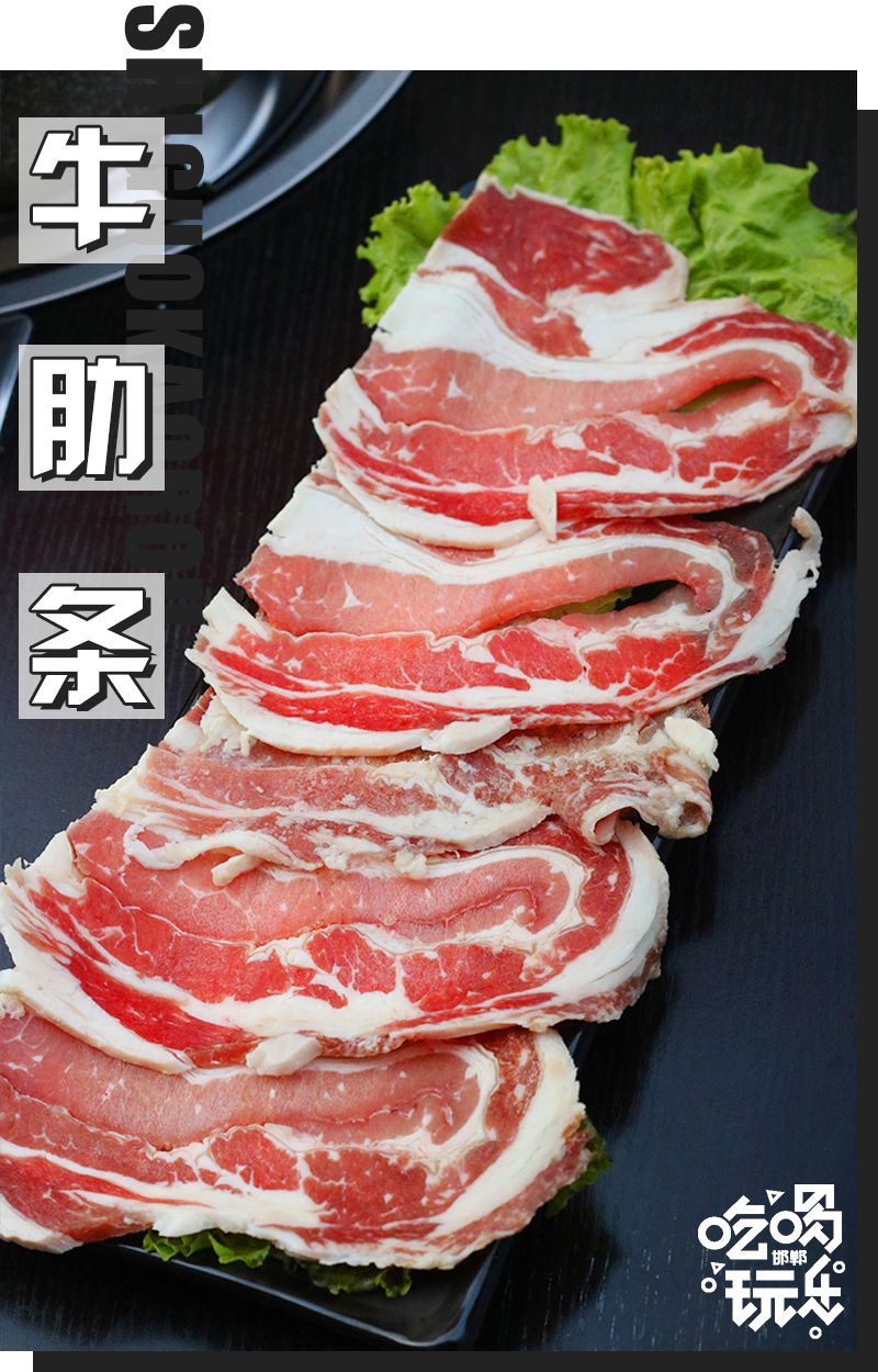 刚端上桌的牛肋条颜值敲高,肥瘦纹理清晰,每一片肉肉都让食肉星人不能说“NO”!