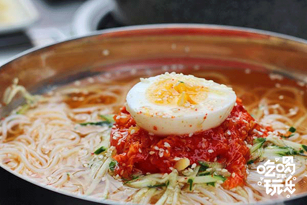 来自朝鲜的正宗口味冷面,用荞麦面制作的冷面,弹滑爽口,冷面的粗细均匀~