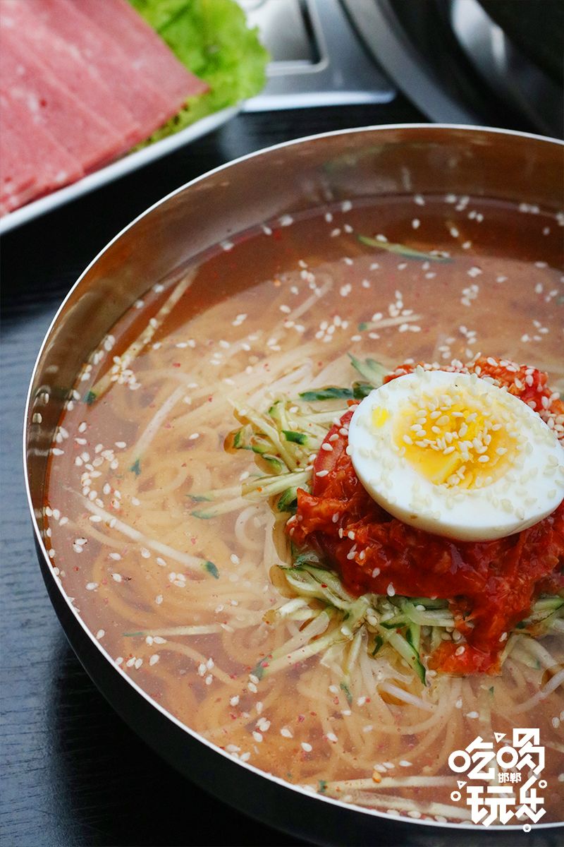 酸甜冰凉的冷面特别开胃,吃上几片焦香四溢的烤肉再嗦上一口冷面,清爽解腻好不自在~