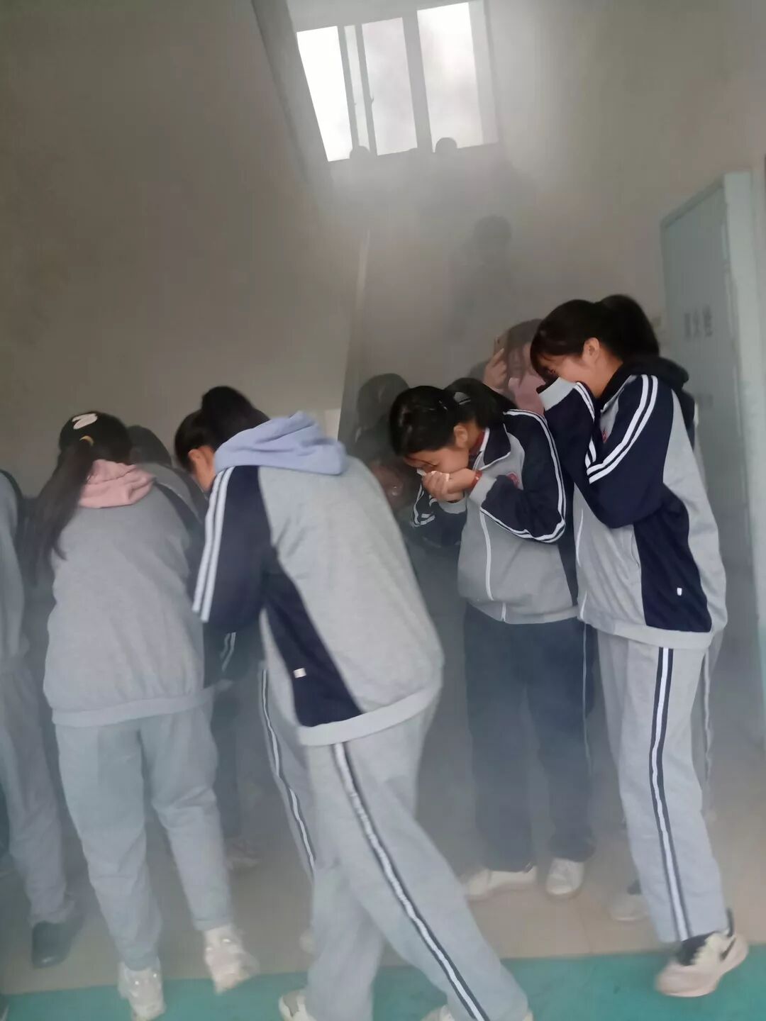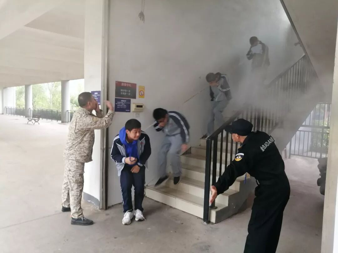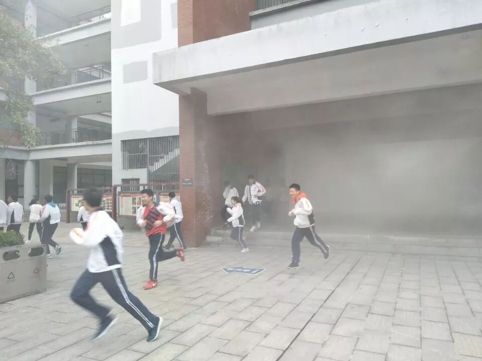 为保证此次演练活动安全、有序地进行,宣教员提前与校方进行了沟通并确定演练方案。当日上午9:30,尖锐又急促的警笛声响起,瞬间,各楼道传来“嗵嗵嗵…”的脚步声,只看见同学们一个个捂鼻、弯腰,靠墙行进,快而不乱,井然有序。仅用了3分钟,全校3000余人全部安全撤离到操场规定区域,安全委员清点人数,并在田径场主席台签到报告。