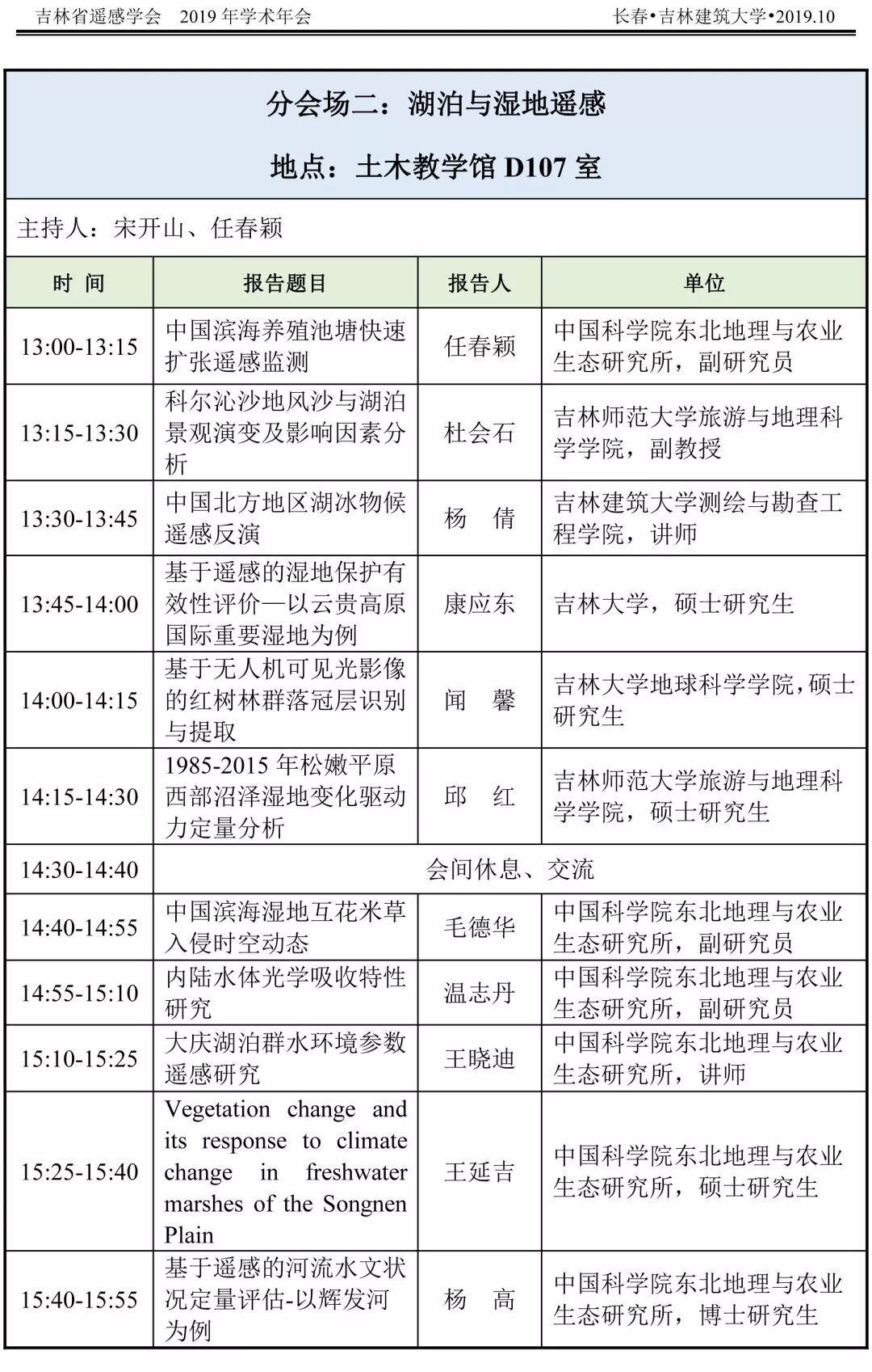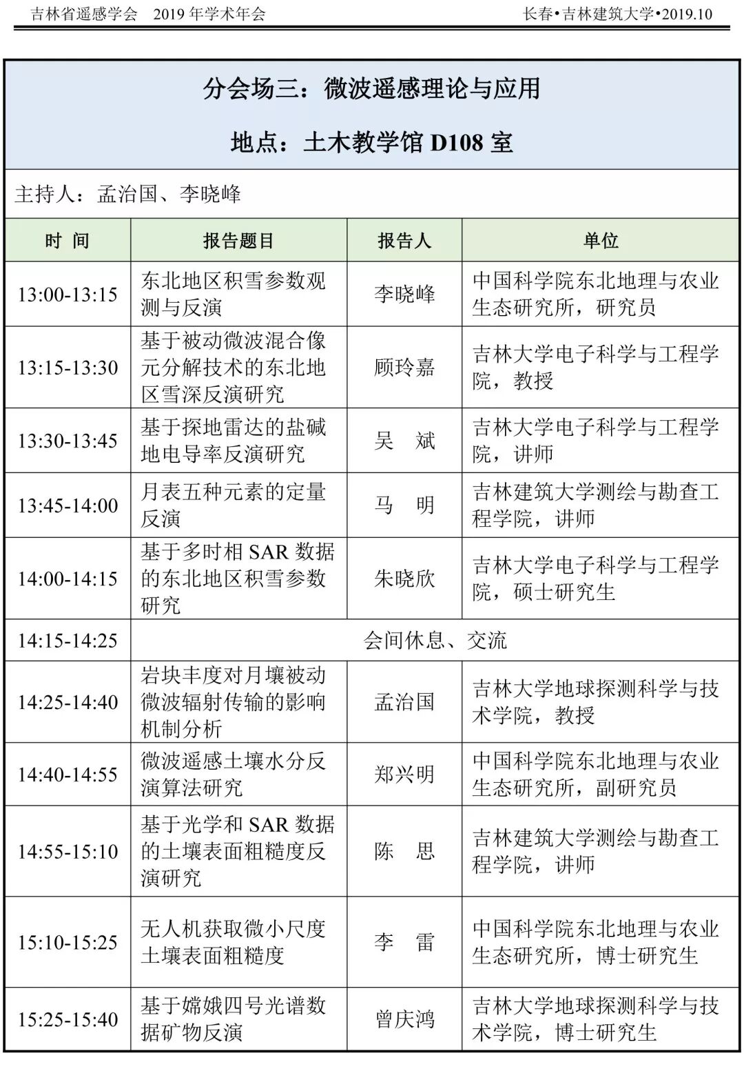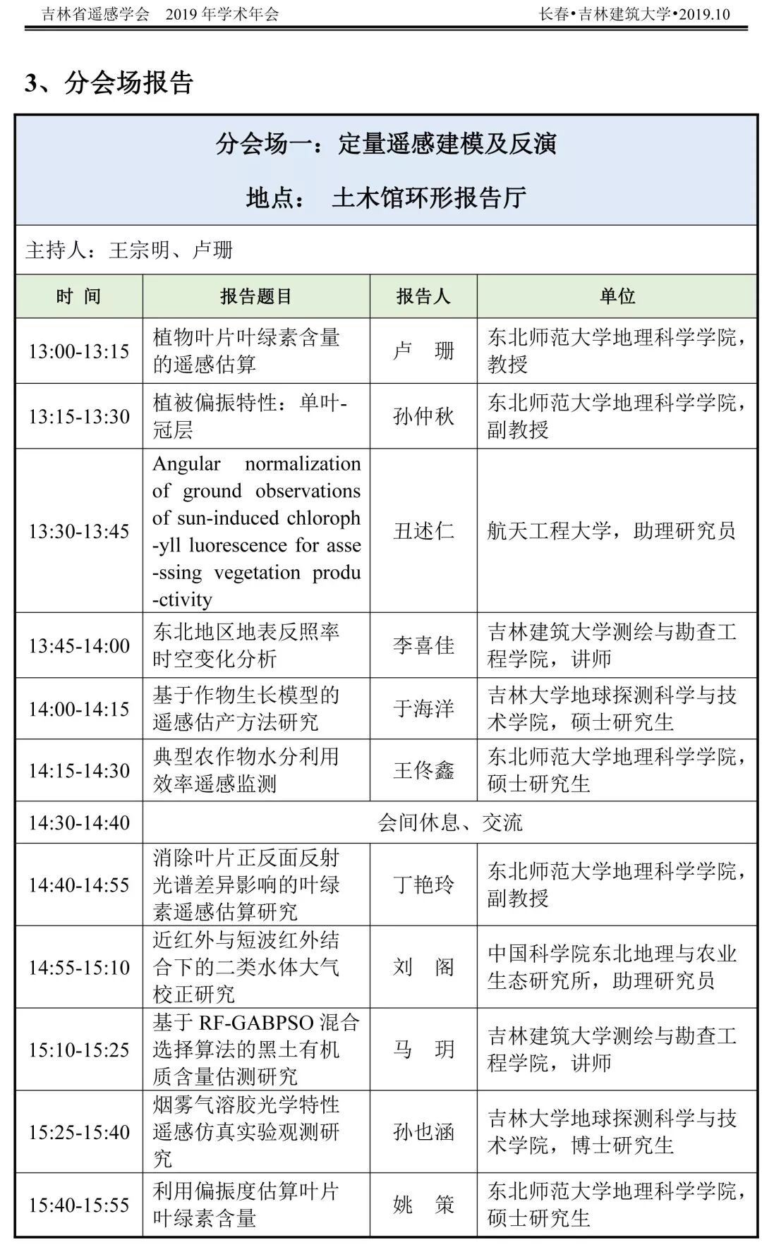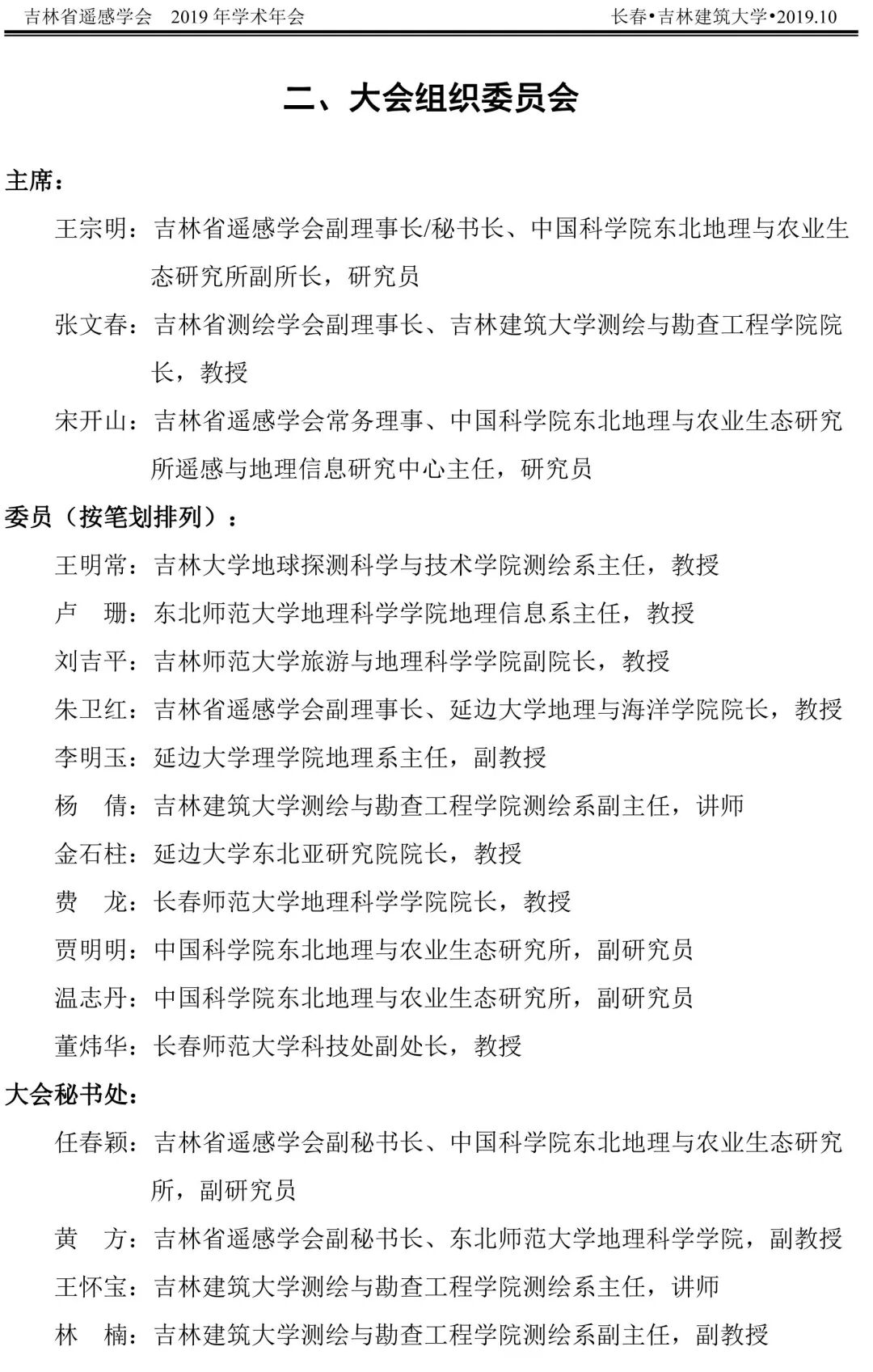 会议通知 | 吉林省遥感学会2019年学术年会会议手册