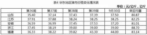 本月,华中地区猪肉月均价每公斤37.19元,环比涨19.9%,同比涨96.9%。河南地区生猪和猪肉外调量增加,需求提升拉动本地生猪和猪肉价格上涨;临近国庆节,随着销区市场猪肉供应增多,对河南地区猪肉采购需求回落,猪肉订单下滑,价格止涨震荡。两湖地区近期生猪存栏量明显下滑,供应紧俏,生猪价格上涨,带动猪肉价格连续上涨。