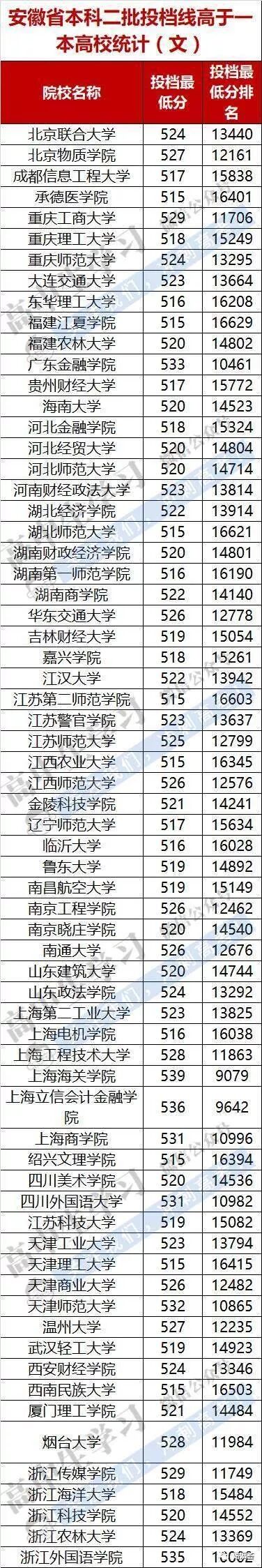 安徽省同样表现突出。据合肥晚报报道:安徽省首次实行二本、三本合并招生,粗略统计发现,其中,文史类院校达到了70余所,理工类院校则近100所,均投档线超一本线。