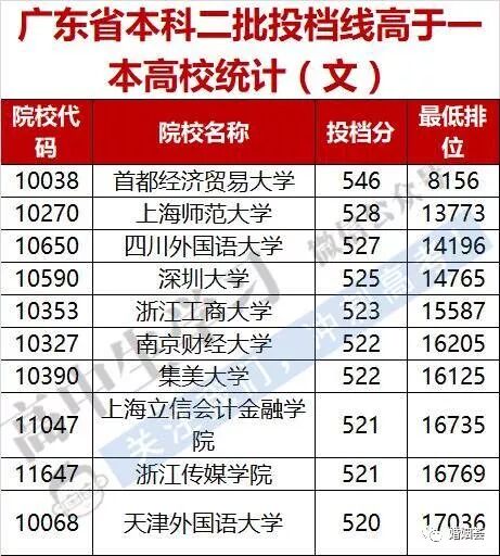 广东省的二本批次录取工作中,省内外都有高校投档线,超出粤一本线。