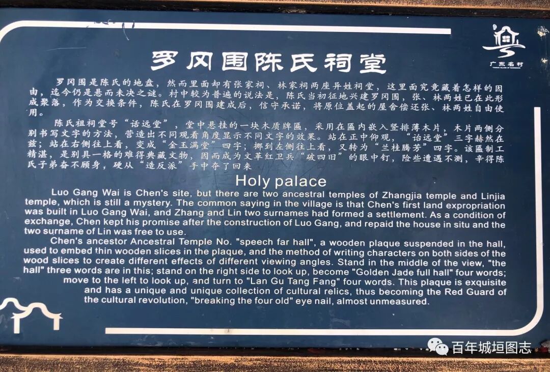 ? ? ?古村建于明代万历年间,至今有600年历史,“村中有围,围中有村”,有罗冈围古围村、清代古戏台、圣旨牌匾等保存完好的文物古迹。