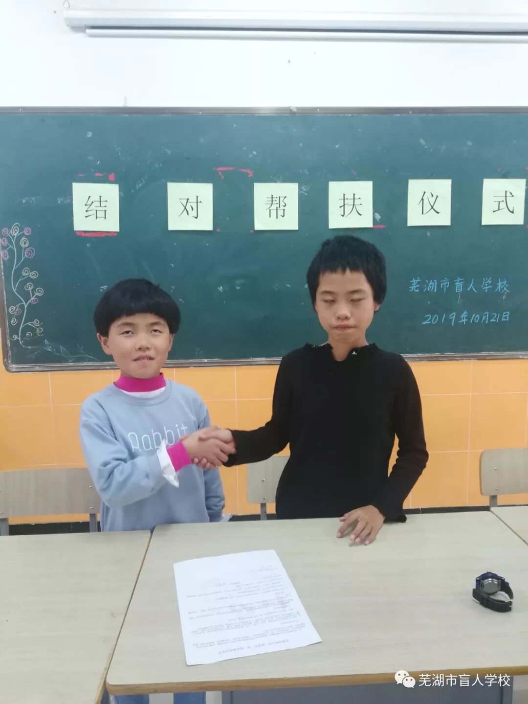10 月 21日下午,芜湖盲校文化班启动了学生“一对一结对帮扶”仪式。